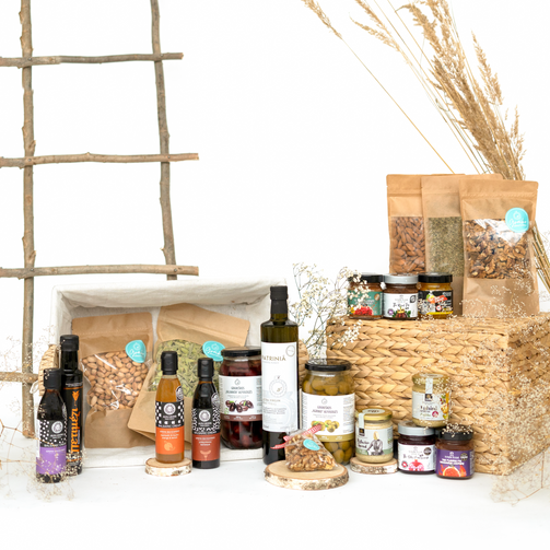 Aliejus iš mūsų šeimos auginamų alyvuogių, alyvuogės marinuotos be konservantų, kaimiški fetos sūriai, padažai, riešutų kremai, prieskoniai ir daug kitų gėrybių.