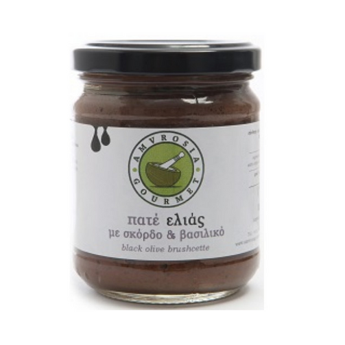 Juodų alyvuogių užtepėlė su česnaku ir baziliku 'Amvrosia' 200gr
